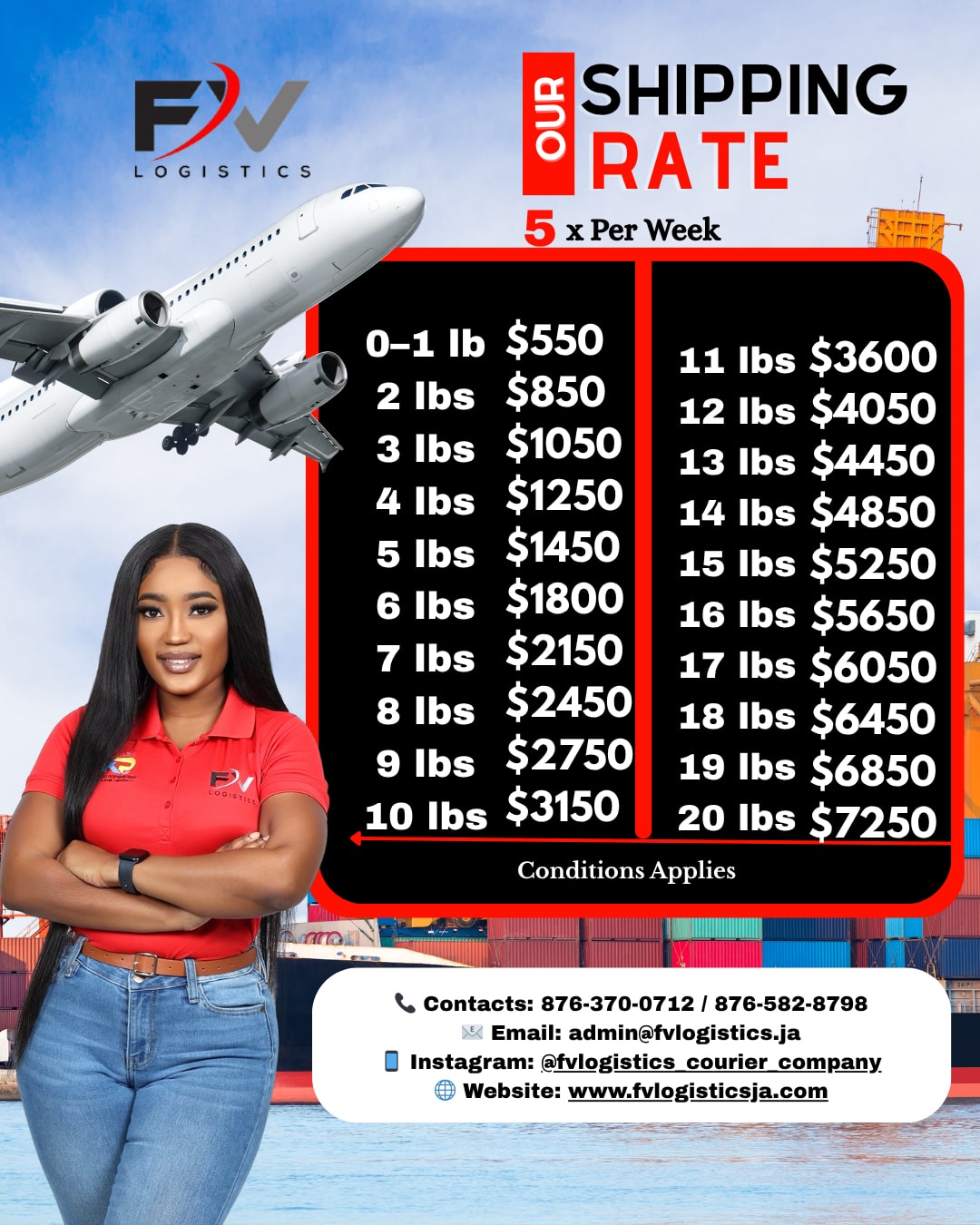 After your package arrives at our Florida warehouse and is logged into our system, it typically takes 3 to 5 business days to reach Jamaica and clear customs. In terms of our shipping schedule, we ship two or three times a week by air on Tuesdays, Thursdays, and Saturdays and once a week by sea on Thursdays. Please note that these days may vary. If there are any delays, we will promptly notify our customers.